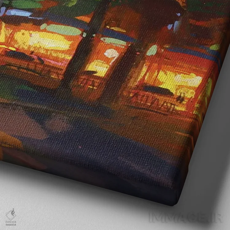 تابلو چراغ‌های کافه اثر الکس مووچون - نمای نزدیک بافت بوم