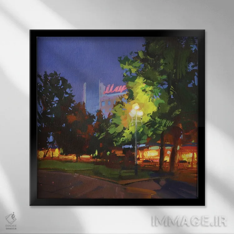 تابلو چراغ‌های کافه اثر الکس مووچون - نمای قاب‌دار مشکی