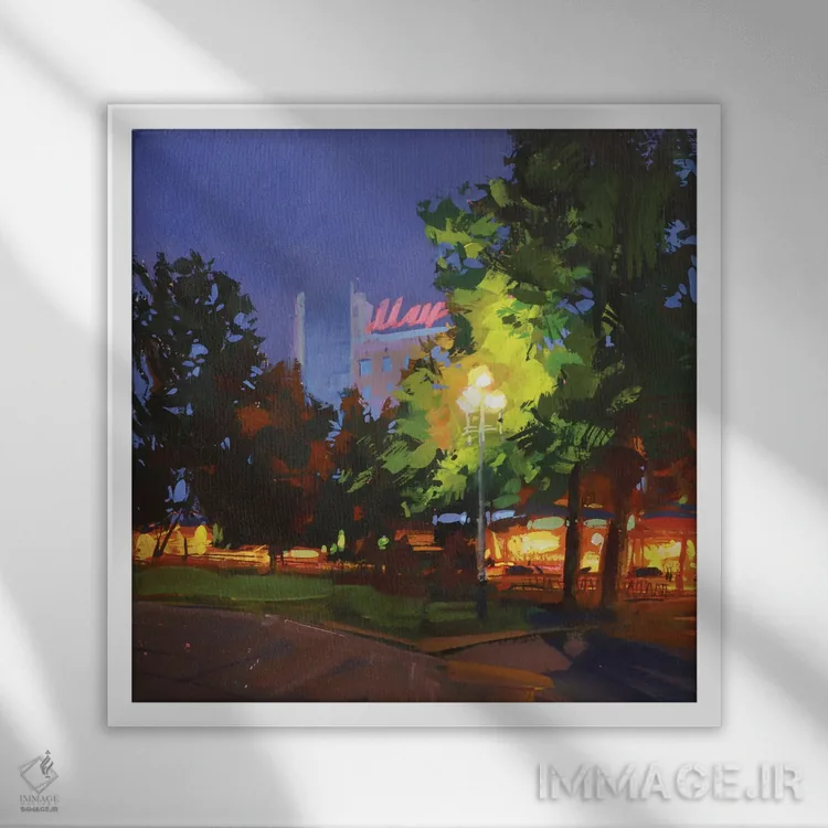تابلو چراغ‌های کافه اثر الکس مووچون - نمای قاب‌دار سفید