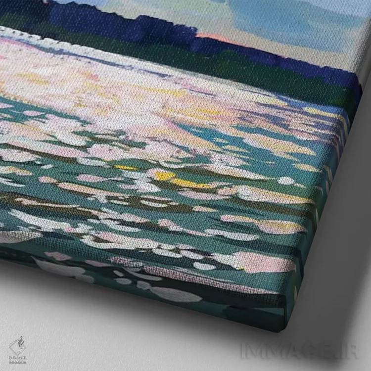 تابلو روز آفتابی در ساحل اثر الکس مووچون - نمای نزدیک بافت بوم