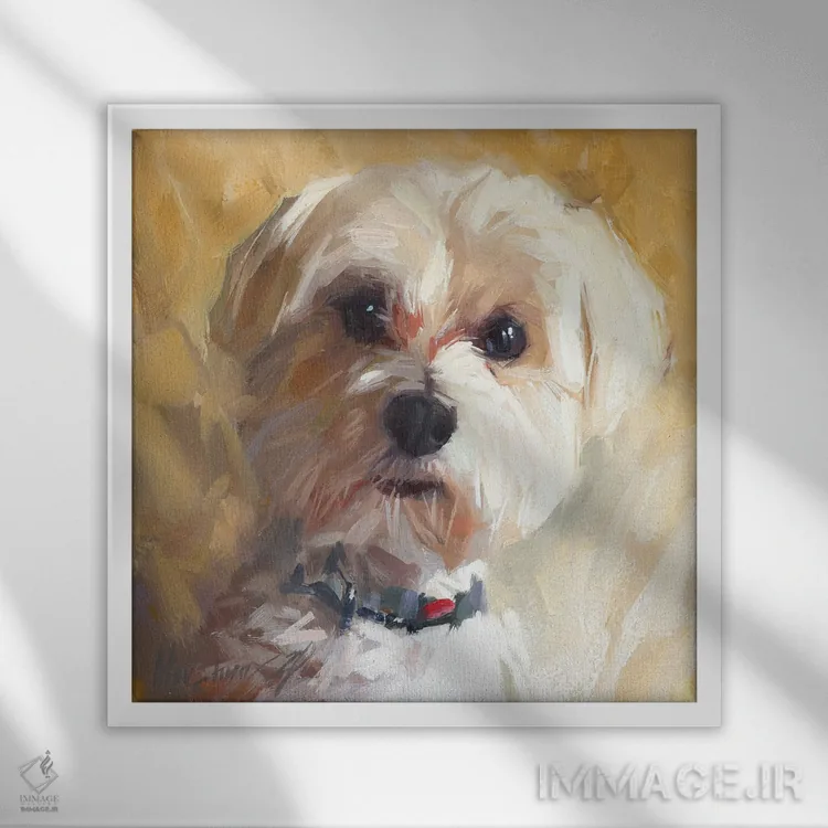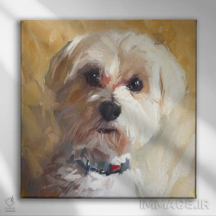 تابلو سگ کوچک اثر الکس مووچون - نمای نزدیک بافت بوم