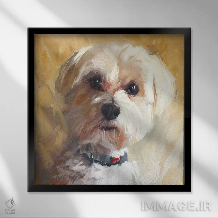 تابلو سگ کوچک اثر الکس مووچون - نمای قاب‌دار سفید