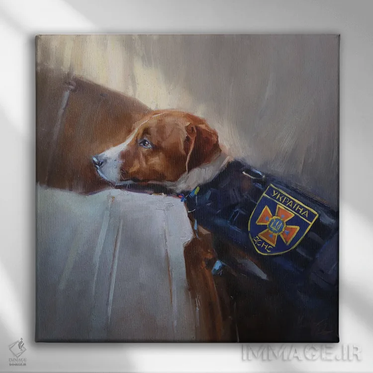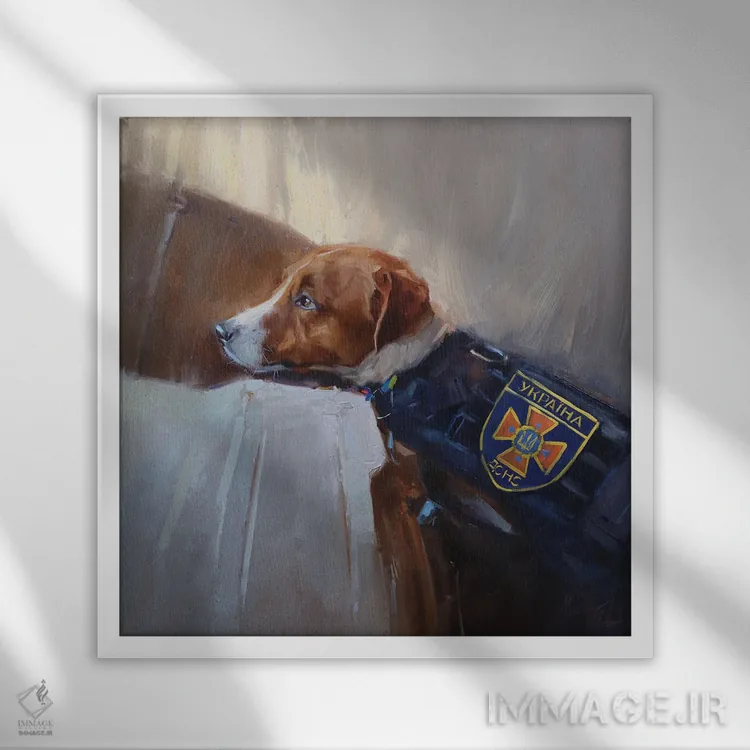 «سگ جک راسل اوکراینی پاترون (نماد معروف اوکراینی)» اثرِ «الکس مووچون» از آن کارهاییست که یک لبخند ریز به چیدمان میدهد؛ برای خانههایی با چوب و پارچههای گرم انتخاب خوبیست. با قاب چوبی یا مشکی، حس مرتبتری پیدا میکند.