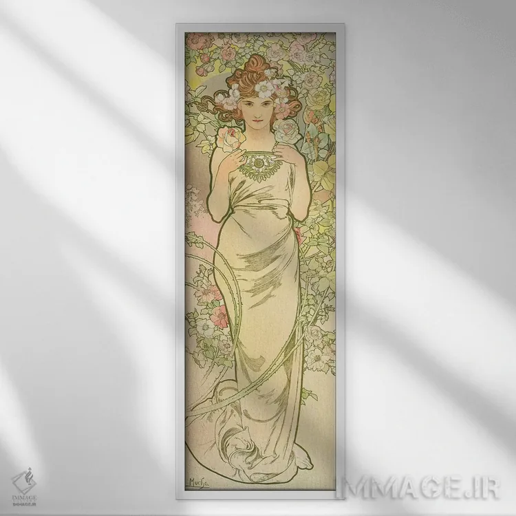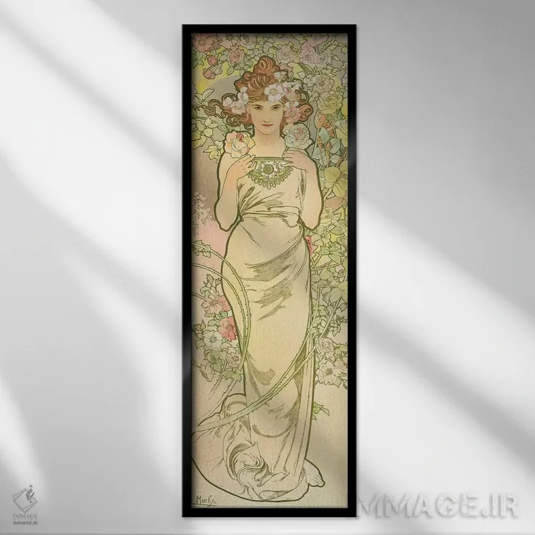 این اثر با عنوان «1898، گلها: رز، ۱۸۹۸» اثرِ «آلفونس موخا (هنرمند آرت نووی چک)» به دیوار، روشناییِ ملایم و دلنشین میدهد؛ برای کنار میز آرایش یا کنسول انتخابی خوشسلیقه است. در کنار گیاهان آپارتمانی، هماهنگتر هم میشود.