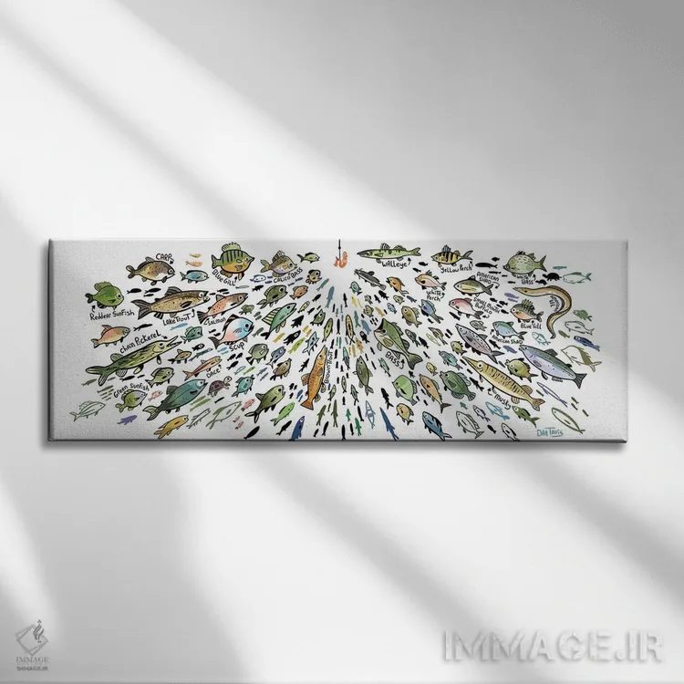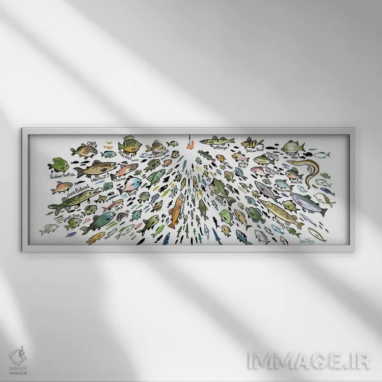 برای اتاقی که به یک عنصر دوستداشتنی نیاز دارد، «ماهی آب شیرین» اثرِ «دن تاویس» یک لبخند ریز به چیدمان میدهد؛ برای اتاق کودک (بدون لحن کودکانه) انتخابی خوشسلیقه است. هر بار نگاهش میکنید، یک جزئیات تازه به چشم میآید.