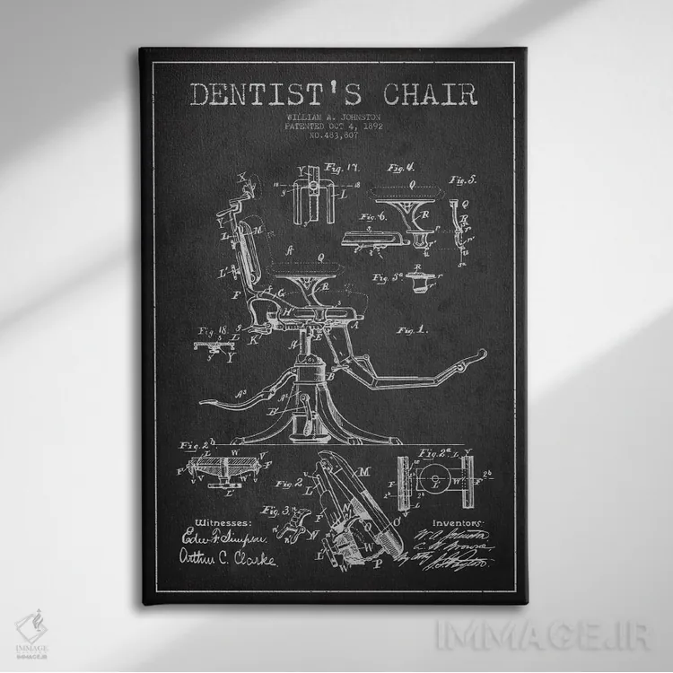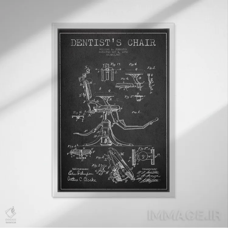 تابلو نقشهٔ ثبت اختراع صندلی دندانپزشک خاکستری اثر پیکسل کهنه (استودیو/نام هنری)