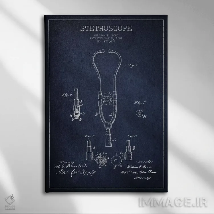 تابلو نقشهٔ ثبت اختراع گوشی پزشکی آبی نفتی اثر پیکسل کهنه (استودیو/نام هنری)