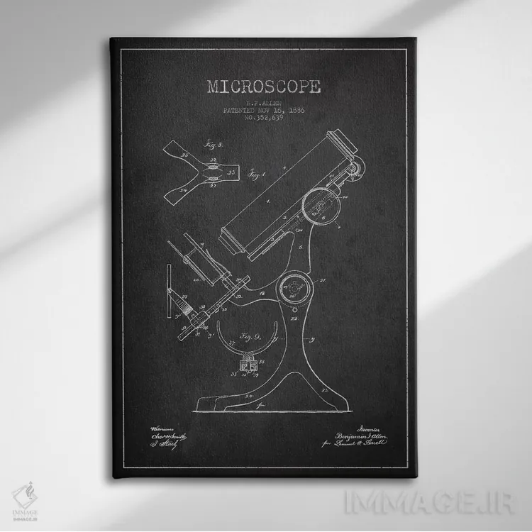 تابلو نقشهٔ ثبت اختراع میکروسکوپ خاکستری اثر پیکسل کهنه (استودیو/نام هنری)