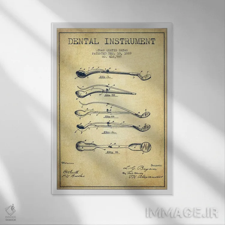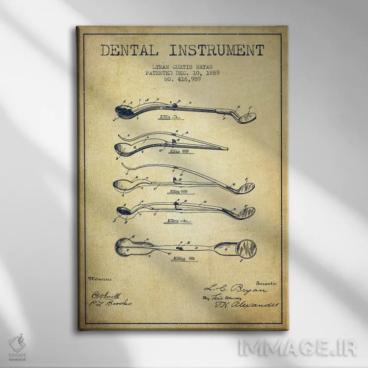 تابلو نقشهٔ ثبت اختراع ابزار دندانپزشکی (طرح کلاسیک) اثر پیکسل کهنه (استودیو/نام هنری)