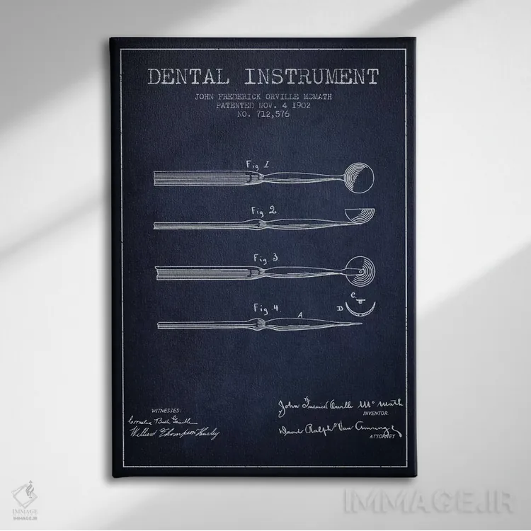 تابلو نقشهٔ ثبت اختراع ابزار دندانپزشکی آبی نفتی اثر پیکسل کهنه (استودیو/نام هنری)