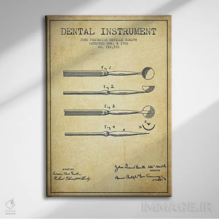 تابلو نقشهٔ ثبت اختراع ابزار دندانپزشکی (طرح کلاسیک) اثر پیکسل کهنه (استودیو/نام هنری)