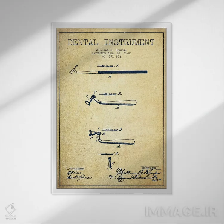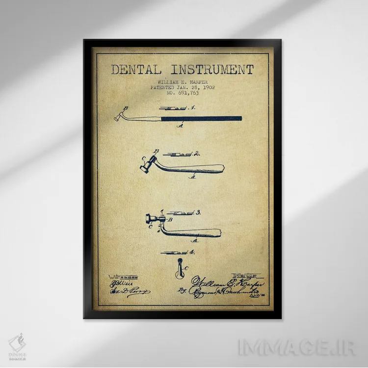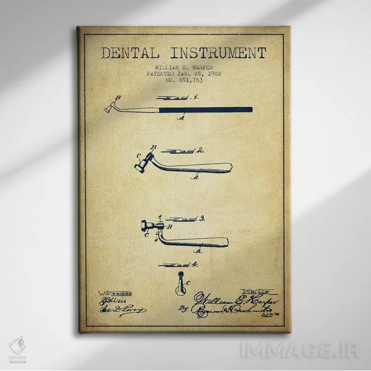 تابلو نقشهٔ ثبت اختراع ابزار دندانپزشکی (طرح کلاسیک) اثر پیکسل کهنه (استودیو/نام هنری)