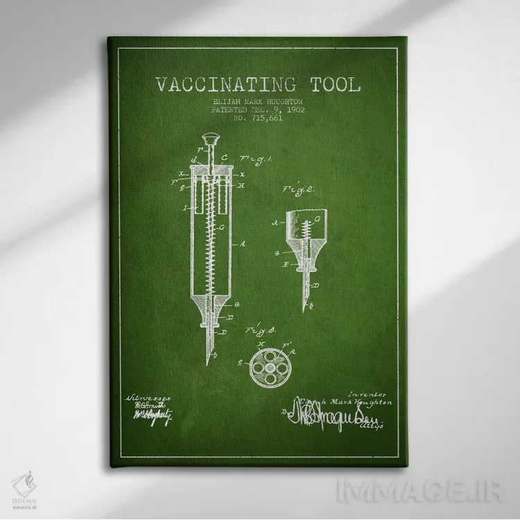 تابلو نقشهٔ ثبت اختراع ابزار واکسیناسیون سبز اثر پیکسل کهنه (استودیو/نام هنری) - نمای پرسپکتیو محصول
