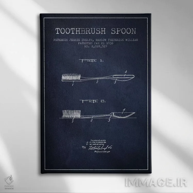 تابلو نقشهٔ ثبت اختراع قاشق مسواکدار آبی نفتی اثر پیکسل کهنه (استودیو/نام هنری)