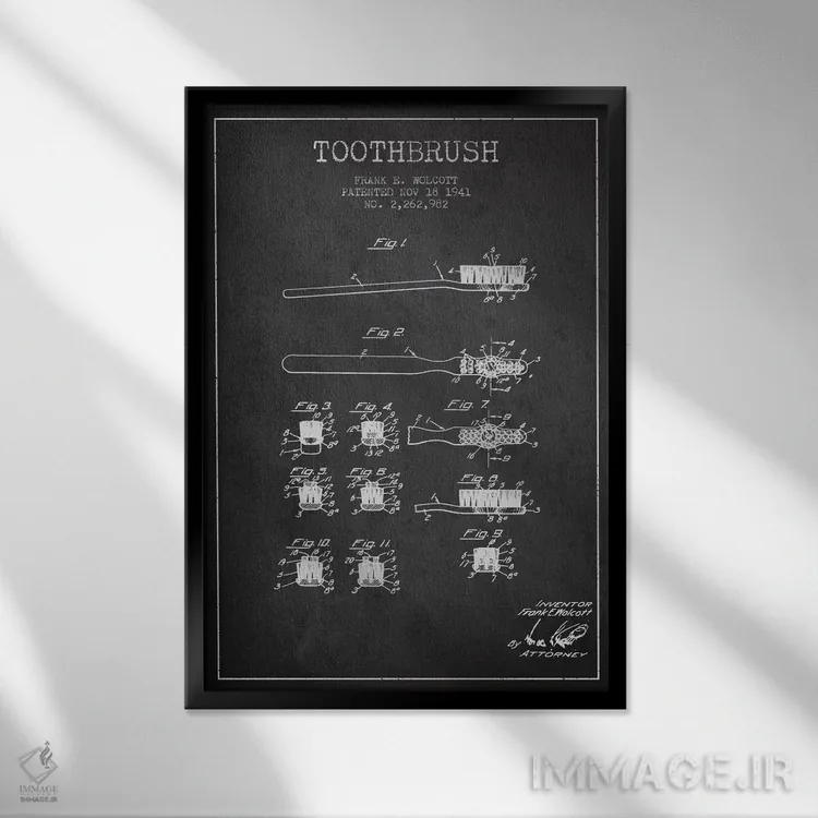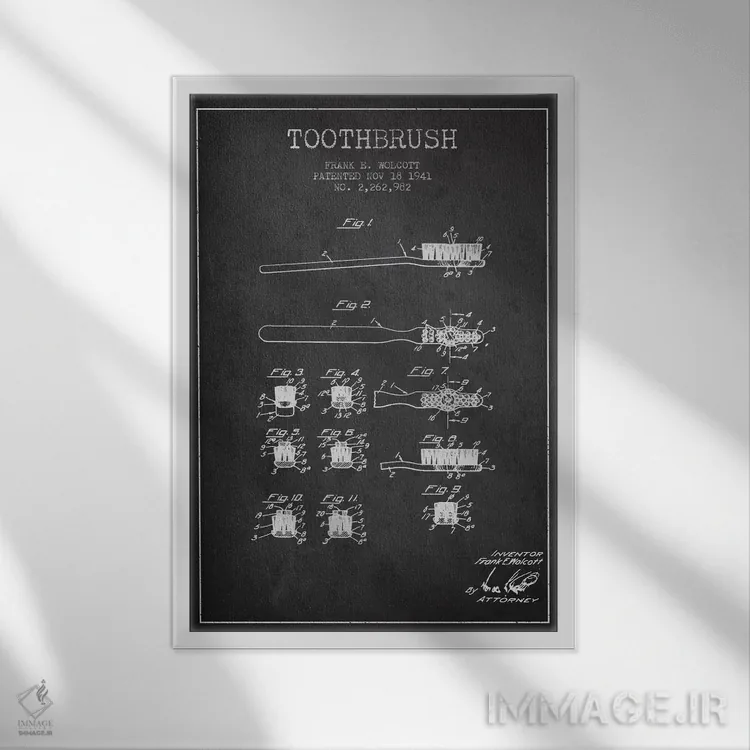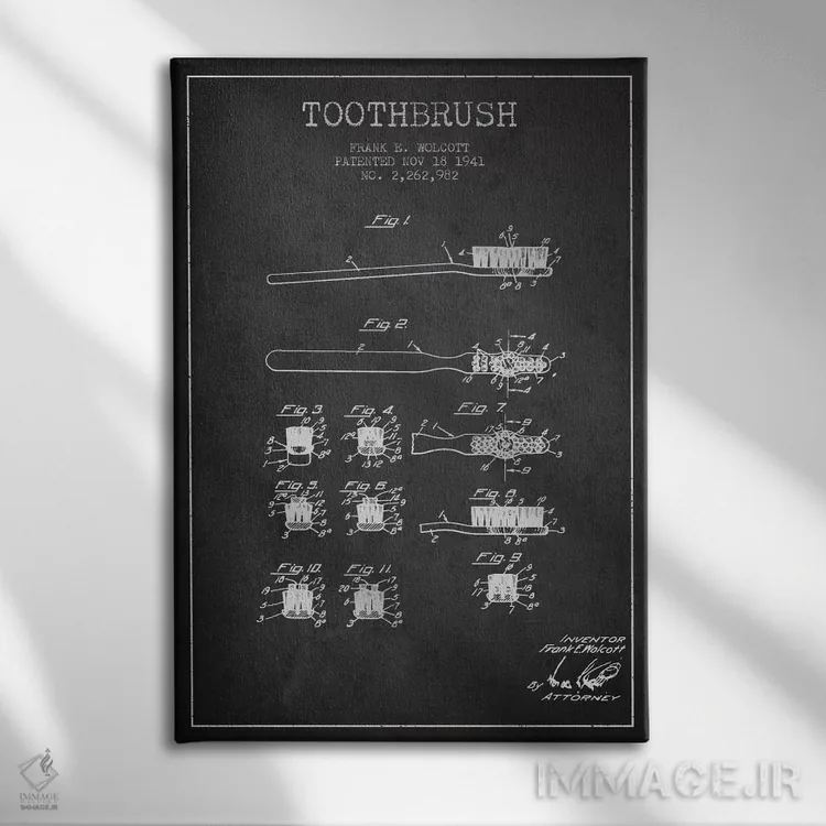 تابلو نقشهٔ ثبت اختراع مسواک خاکستری اثر پیکسل کهنه (استودیو/نام هنری)