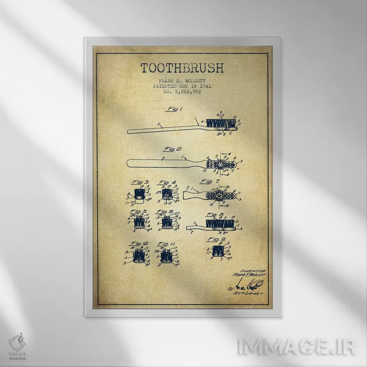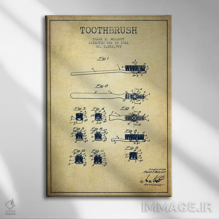 تابلو نقشهٔ ثبت اختراع مسواک (طرح کلاسیک) اثر پیکسل کهنه (استودیو/نام هنری)