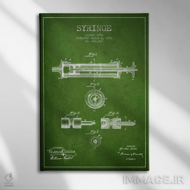 تابلو نقشهٔ ثبت اختراع سرنگ سبز اثر پیکسل کهنه (استودیو/نام هنری)
