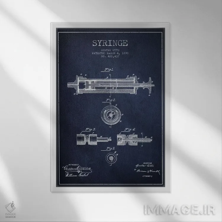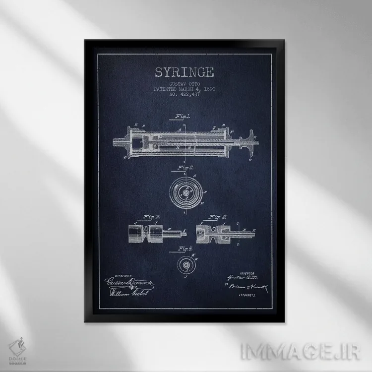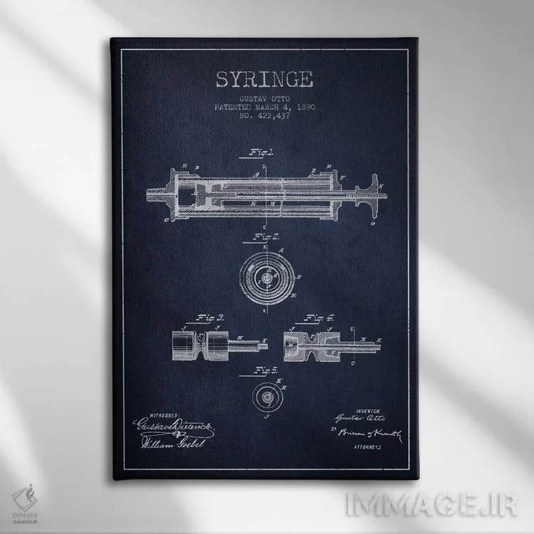 تابلو نقشهٔ ثبت اختراع سرنگ آبی نفتی اثر پیکسل کهنه (استودیو/نام هنری)