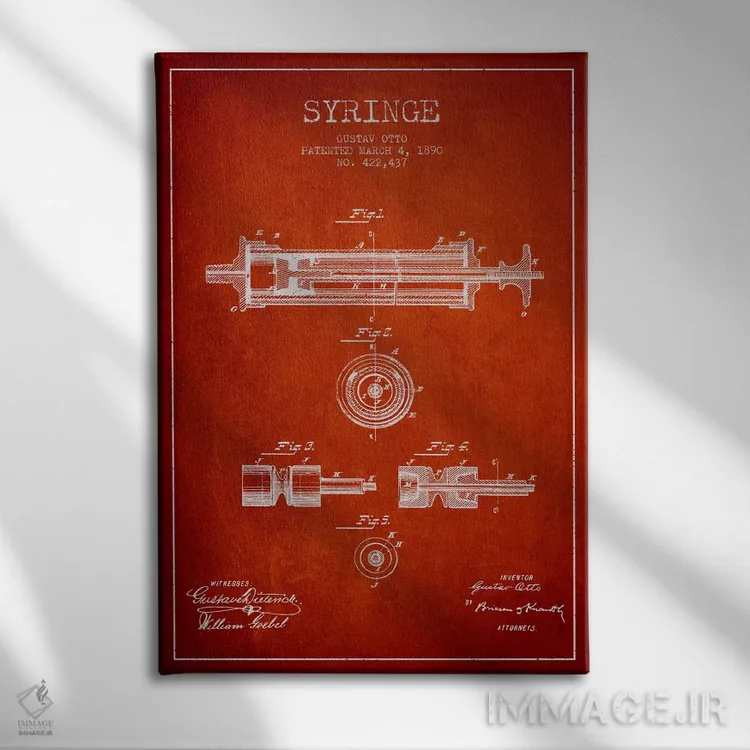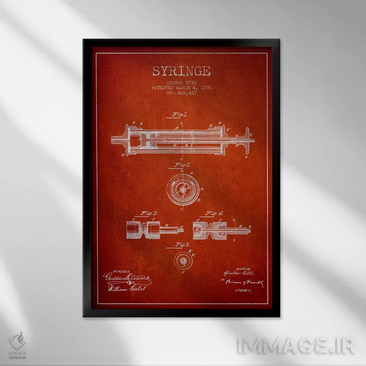 تابلو نقشهٔ ثبت اختراع سرنگ قرمز اثر پیکسل کهنه (استودیو/نام هنری)