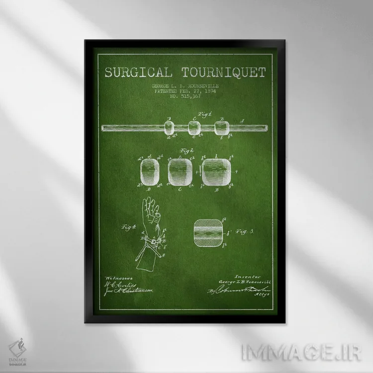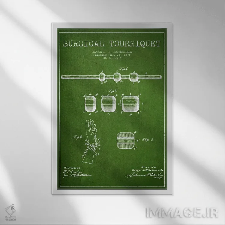 اگر دکور شما کلاسیک/رترو است، «نقشهٔ ثبت اختراع تورنیکت جراحی سبز» اثرِ «پیکسل کهنه (استودیو/نام هنری)» با سبک هنری کاملاًً مینشیند.