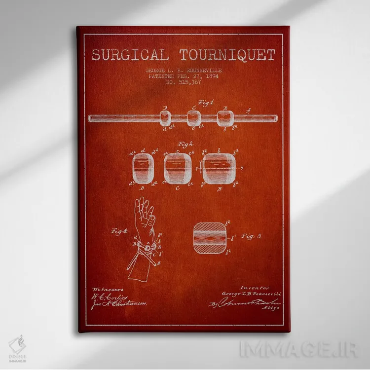 تابلو نقشهٔ ثبت اختراع تورنیکت جراحی قرمز اثر پیکسل کهنه (استودیو/نام هنری)