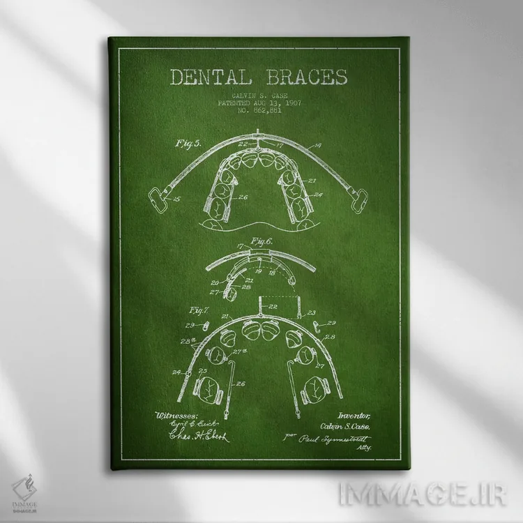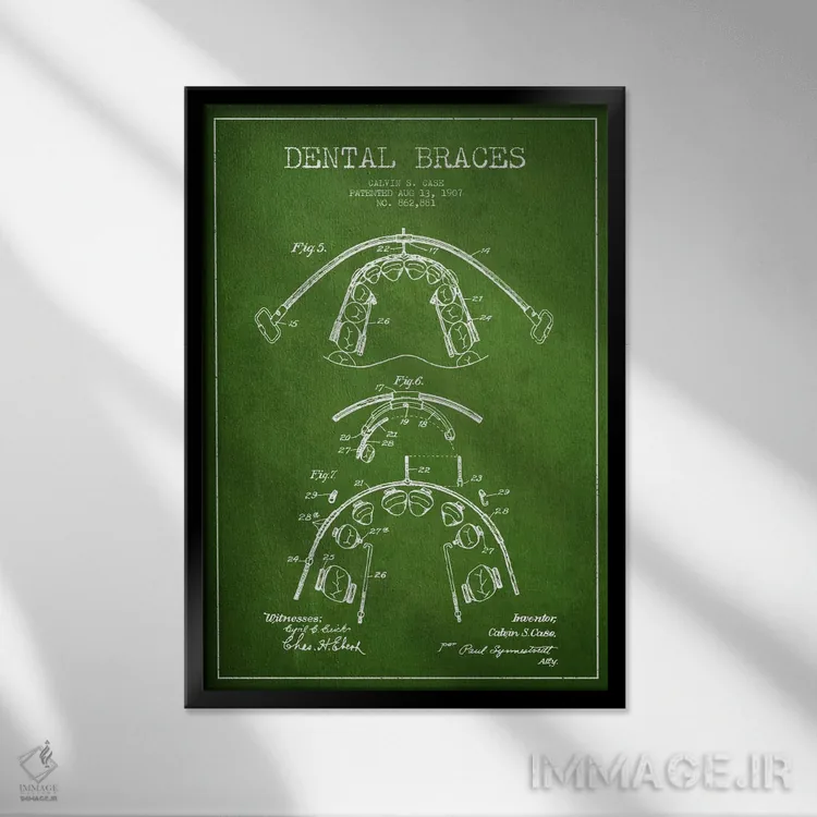 اگر دکور شما کلاسیک/رترو است، «نقشهٔ ثبت اختراع براکت دندان سبز» اثرِ «پیکسل کهنه (استودیو/نام هنری)» با سبک هنری کاملاًً مینشیند.