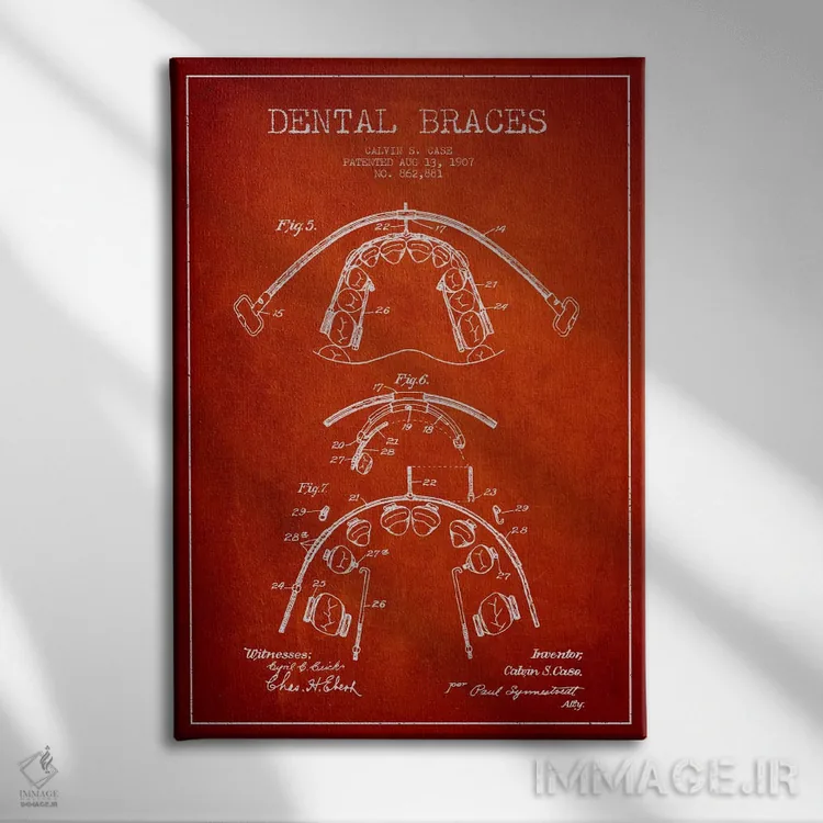 تابلو نقشهٔ ثبت اختراع براکت دندان قرمز اثر پیکسل کهنه (استودیو/نام هنری)