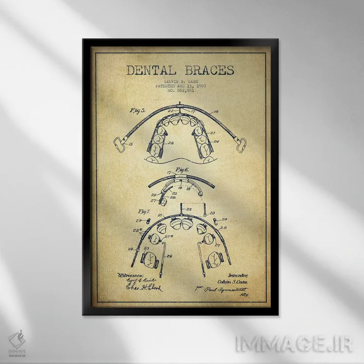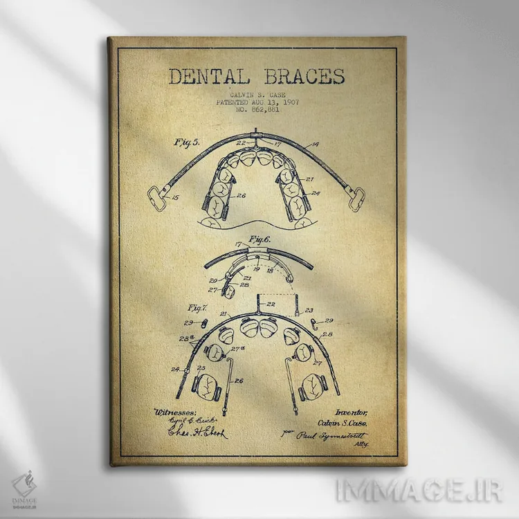 تابلو نقشهٔ ثبت اختراع براکت دندان (طرح کلاسیک) اثر پیکسل کهنه (استودیو/نام هنری)
