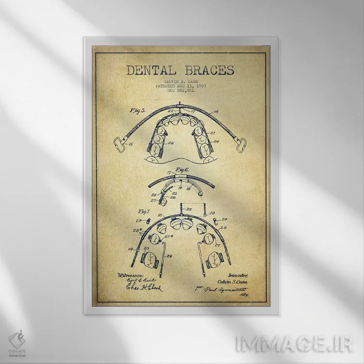 «نقشهٔ ثبت اختراع براکت دندان (طرح کلاسیک)» اثرِ «پیکسل کهنه (استودیو/نام هنری)» با حالوهوای هنری، حس نوستالژیِ کنترلشدهای به فضا میدهد؛ مناسب برای چیدمانهای رترو و کلاسیک.