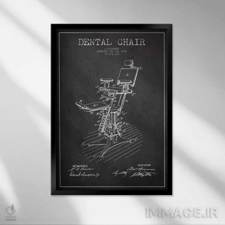 تابلو نقشهٔ ثبت اختراع صندلی دندانپزشکی خاکستری اثر پیکسل کهنه (استودیو/نام هنری)