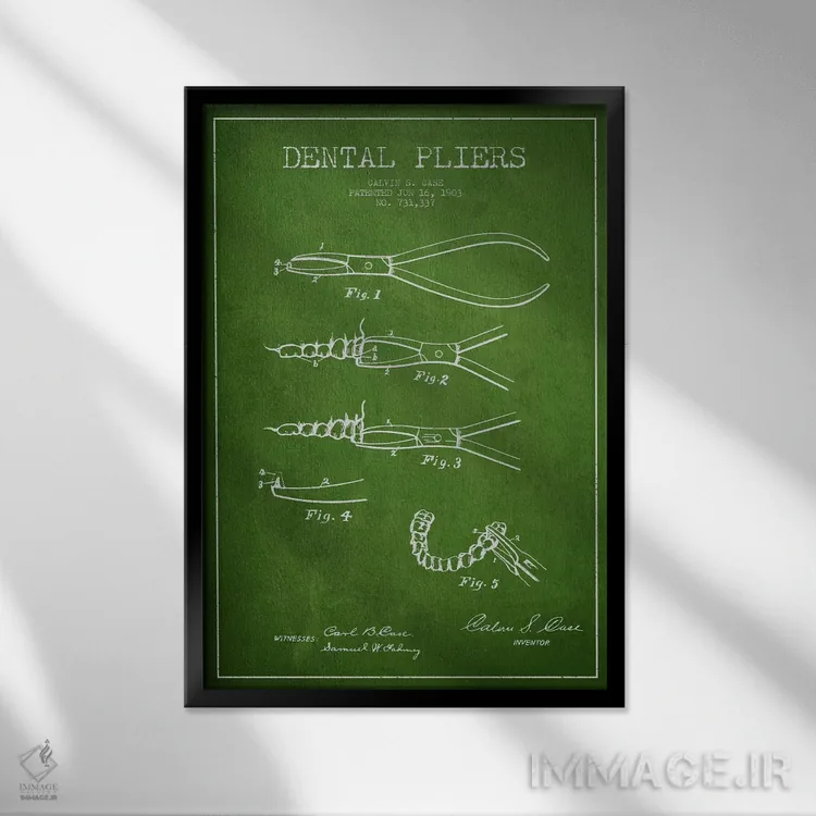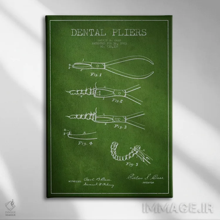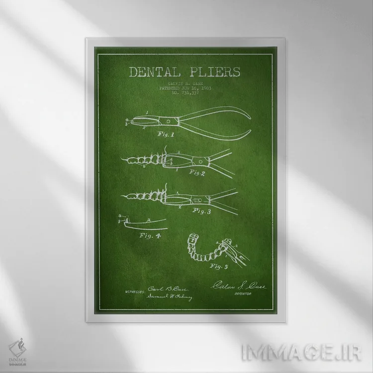 تابلو نقشهٔ ثبت اختراع انبر دندانپزشکی سبز اثر پیکسل کهنه (استودیو/نام هنری)