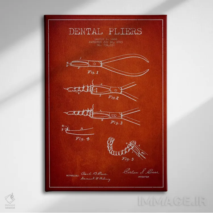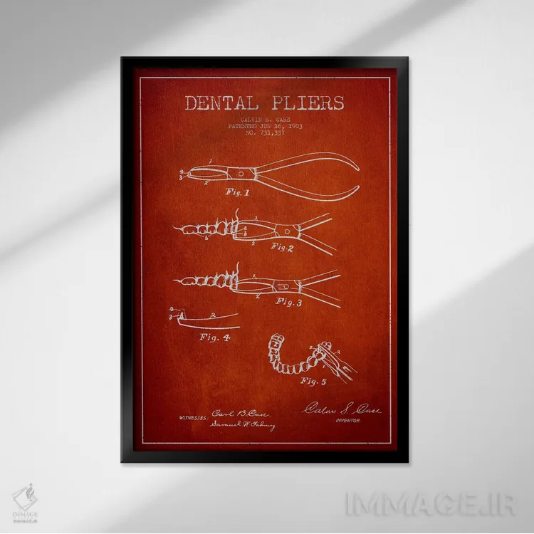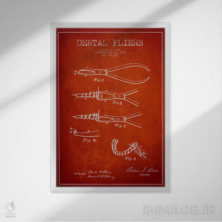 تابلو نقشهٔ ثبت اختراع انبر دندانپزشکی قرمز اثر پیکسل کهنه (استودیو/نام هنری)