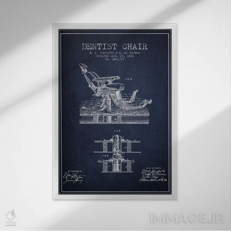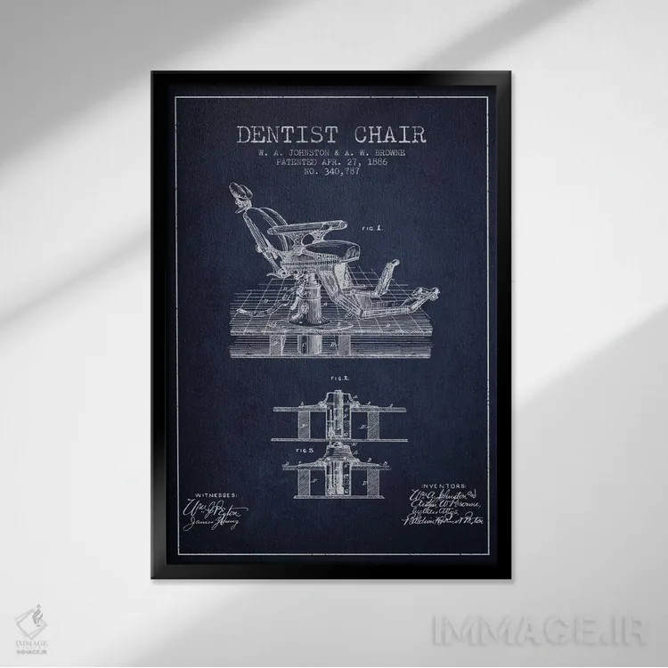 تابلو نقشهٔ ثبت اختراع صندلی دندانپزشک آبی نفتی اثر پیکسل کهنه (استودیو/نام هنری)