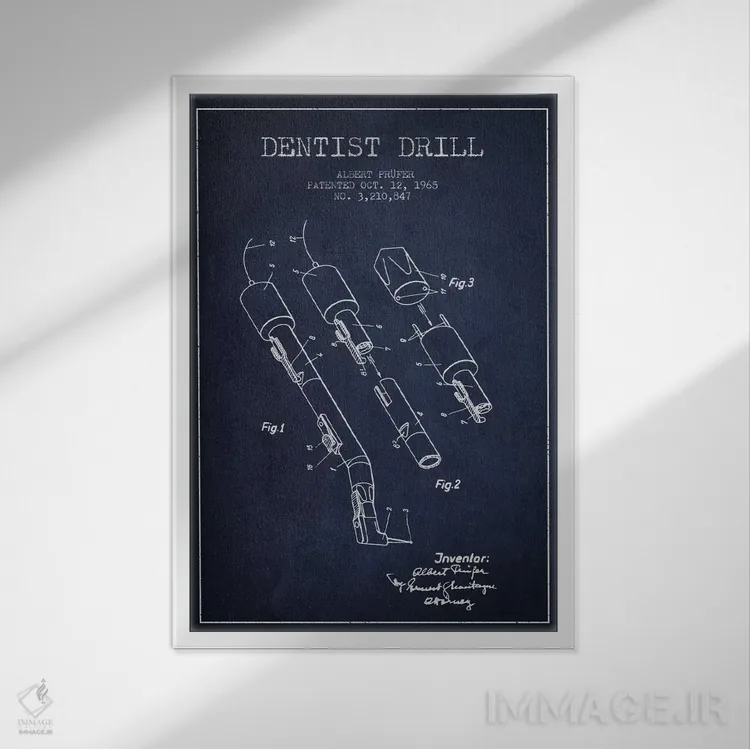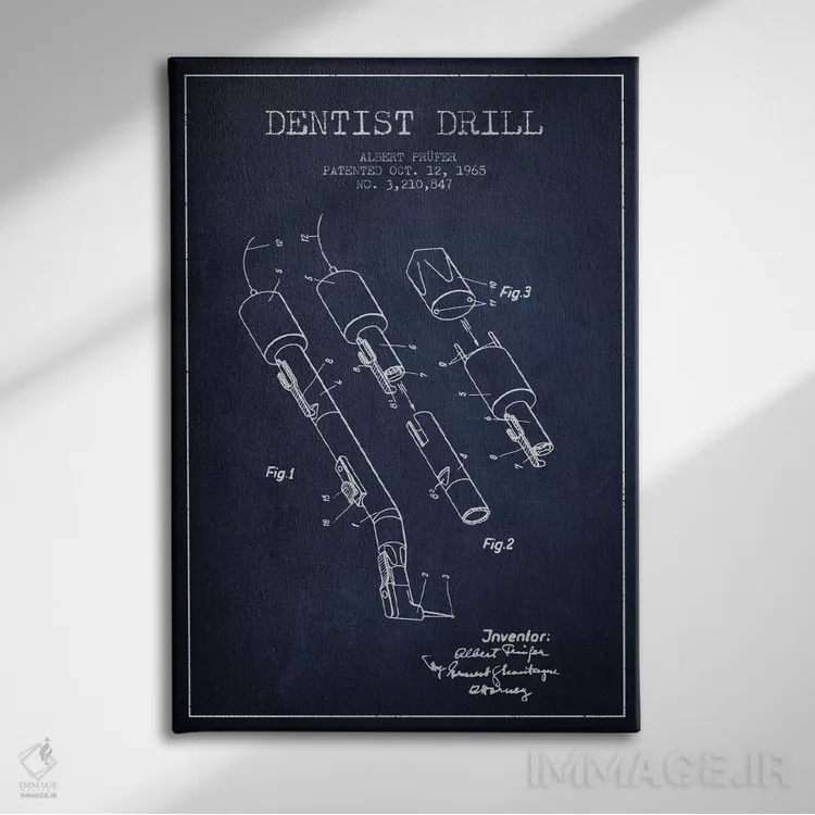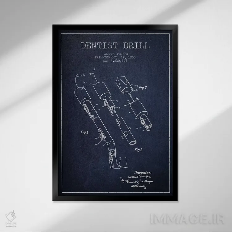 تابلو نقشهٔ ثبت اختراع دریل دندانپزشکی آبی نفتی اثر پیکسل کهنه (استودیو/نام هنری)