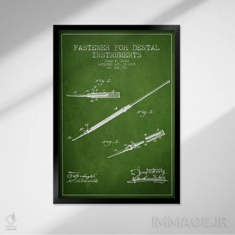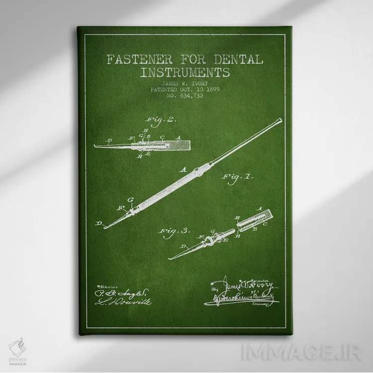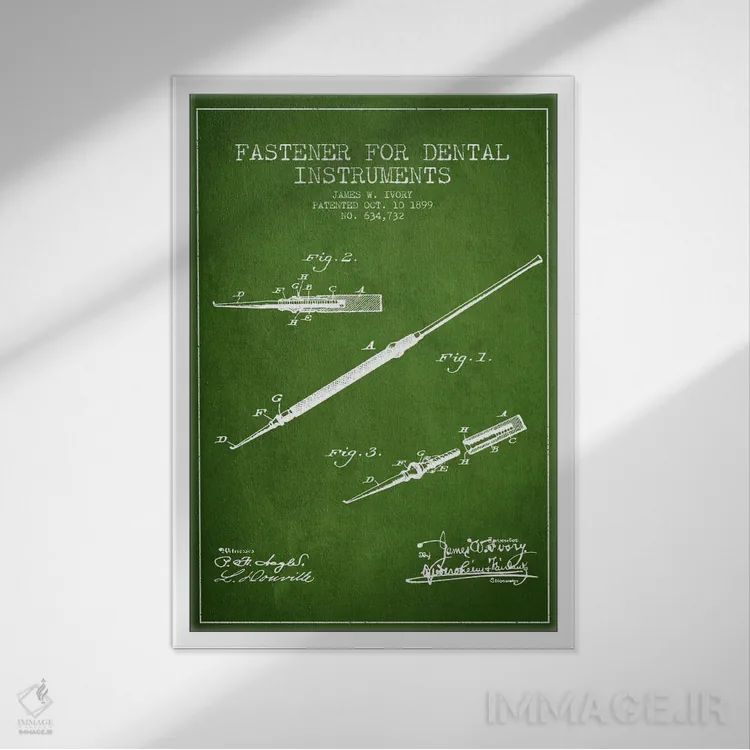 تابلو نقشهٔ ثبت اختراع ابزار دندانپزشکی بستدار (سبز) اثر پیکسل کهنه (استودیو/نام هنری)