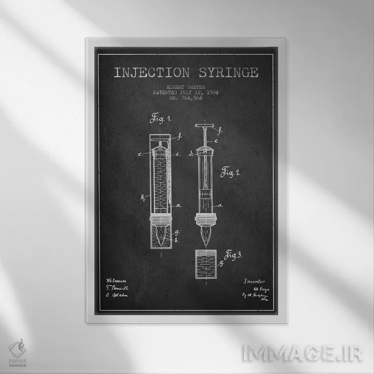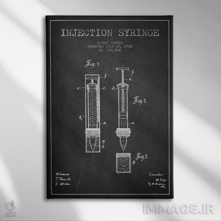 تابلو نقشهٔ ثبت اختراع سرنگ تزریق (زغالی) اثر پیکسل کهنه (استودیو/نام هنری)