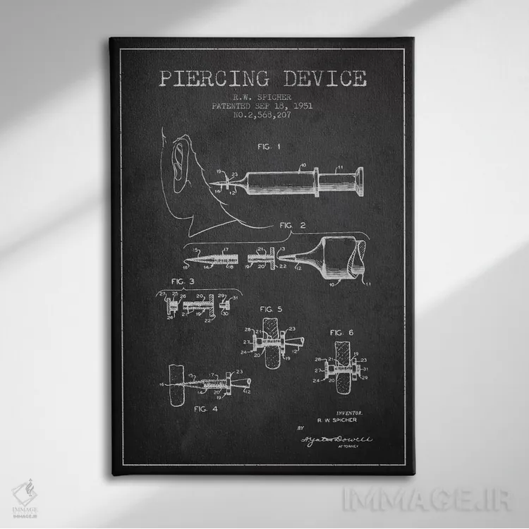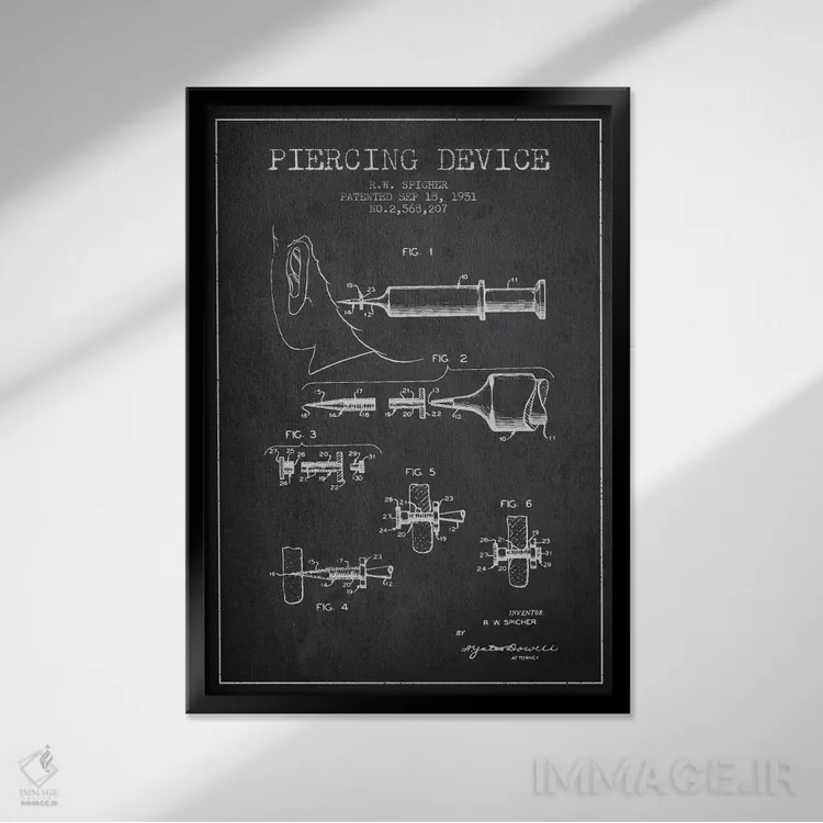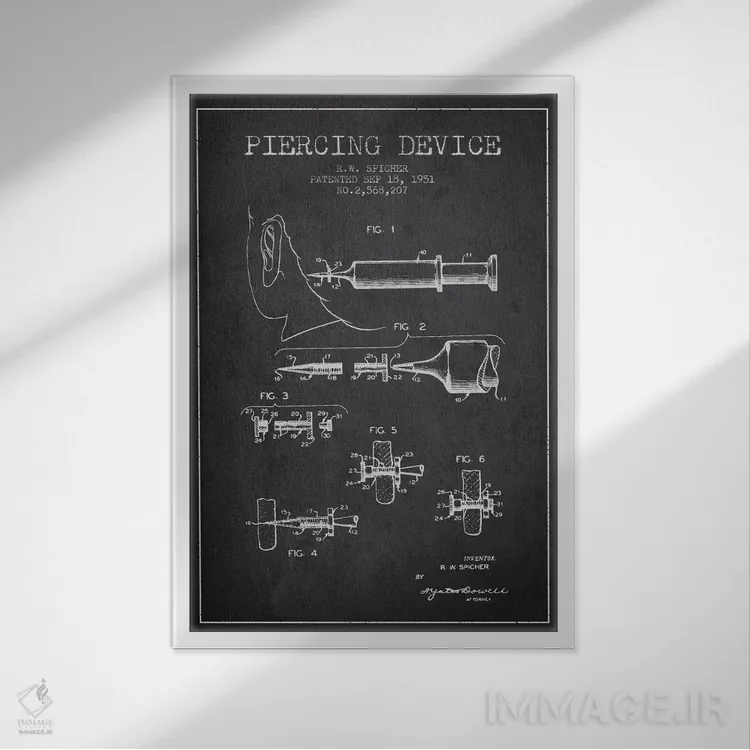 تابلو نقشهٔ ثبت اختراع دستگاه سوراخکاری (زغالی) اثر پیکسل کهنه (استودیو/نام هنری)