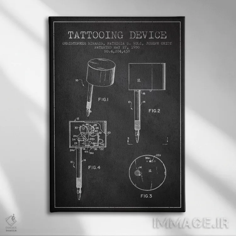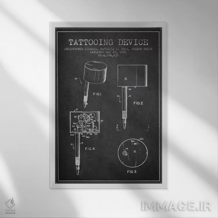 تابلو نقشهٔ ثبت اختراع دستگاه تاتو (زغالی) اثر پیکسل کهنه (استودیو/نام هنری)