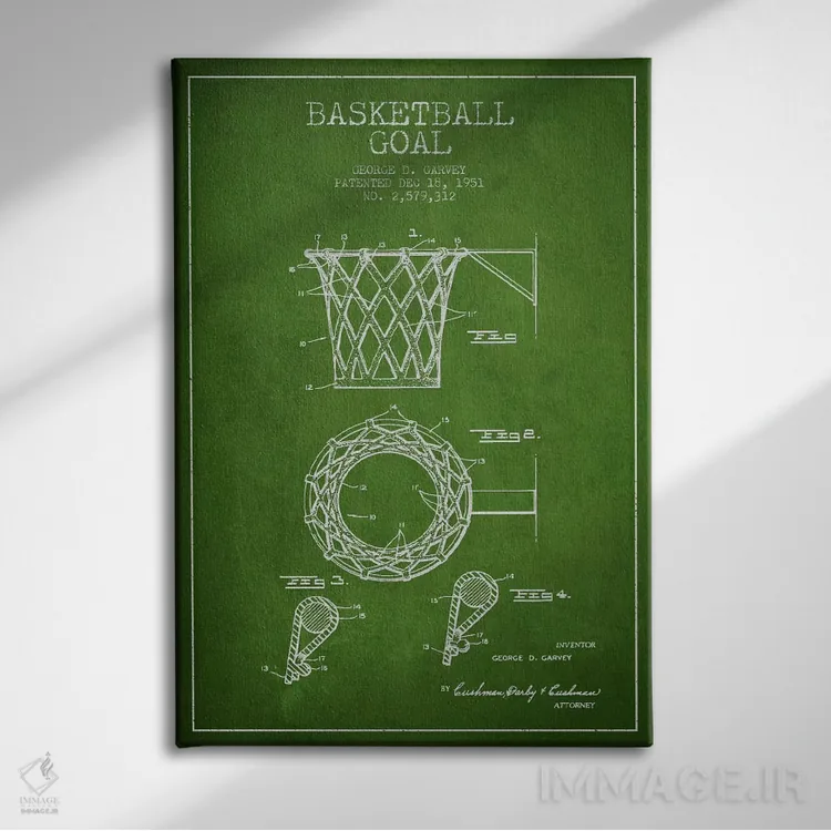 تابلو دکوراتیو نقشه ثبت اختراع حلقه بسکتبال اثر پیکسل کهنه