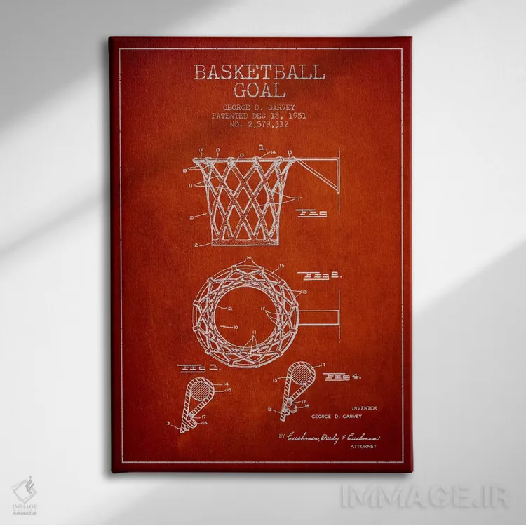 تابلو دکوراتیو نقشه ثبت اختراع حلقه بسکتبال اثر پیکسل کهنه