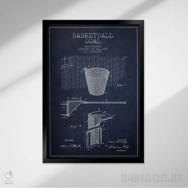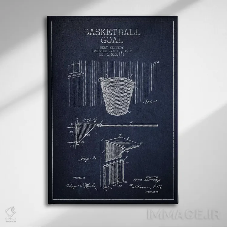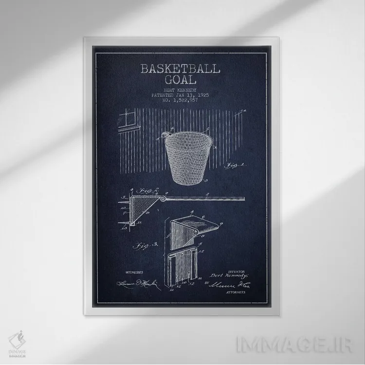 تابلو نقشهٔ ثبت اختراع حلقه بسکتبال (آبی سرمهای) اثر پیکسل کهنه (استودیو/نام هنری)