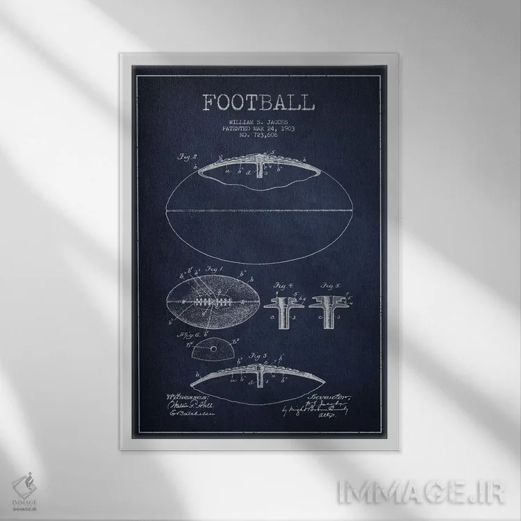 در «نقشهٔ ثبت اختراع توپ فوتبال (تمام آبی سرمهای)» اثرِ «پیکسل کهنه (استودیو/نام هنری)»، موضوعِ این اثر با زبانِ رترو روایت میشود؛ هم خاص است هم دکورپذیر.