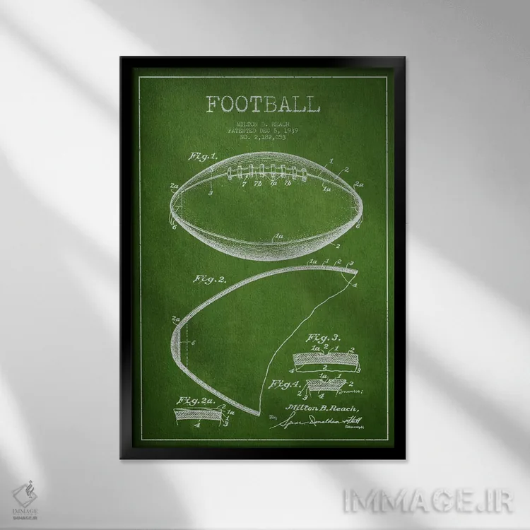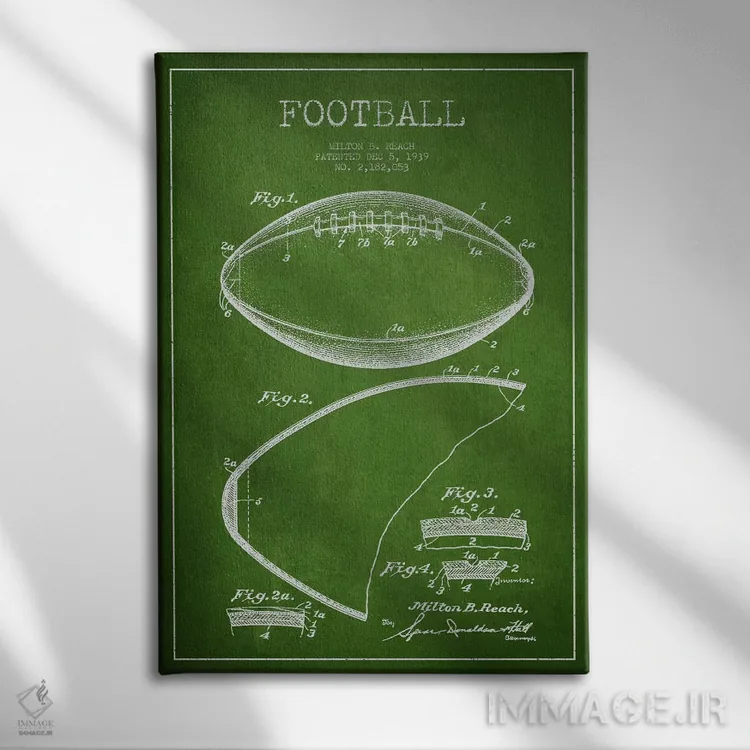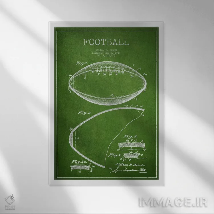 تابلو نقشهٔ ثبت اختراع توپ فوتبال (سبز) اثر پیکسل کهنه (استودیو/نام هنری)