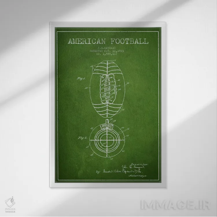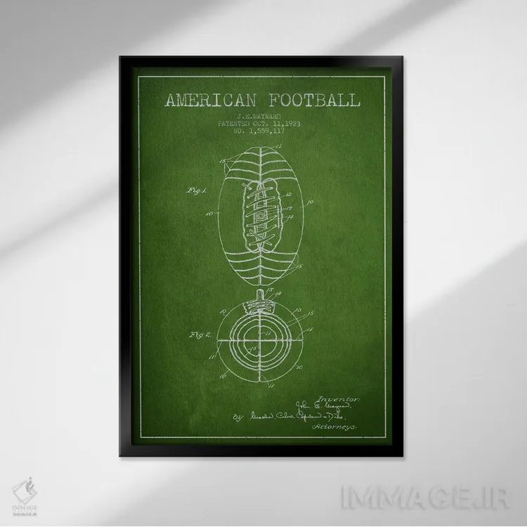 تابلو نقشهٔ ثبت اختراع توپ فوتبال (سبز) اثر پیکسل کهنه (استودیو/نام هنری)