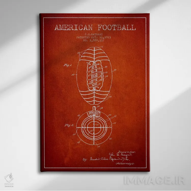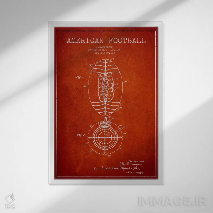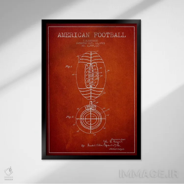 تابلو نقشهٔ ثبت اختراع توپ فوتبال (قرمز) اثر پیکسل کهنه (استودیو/نام هنری)