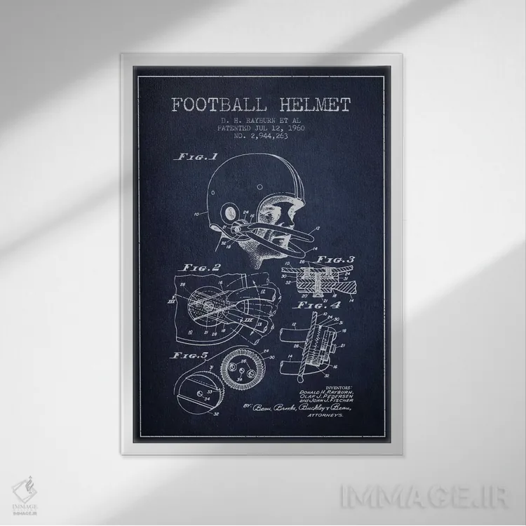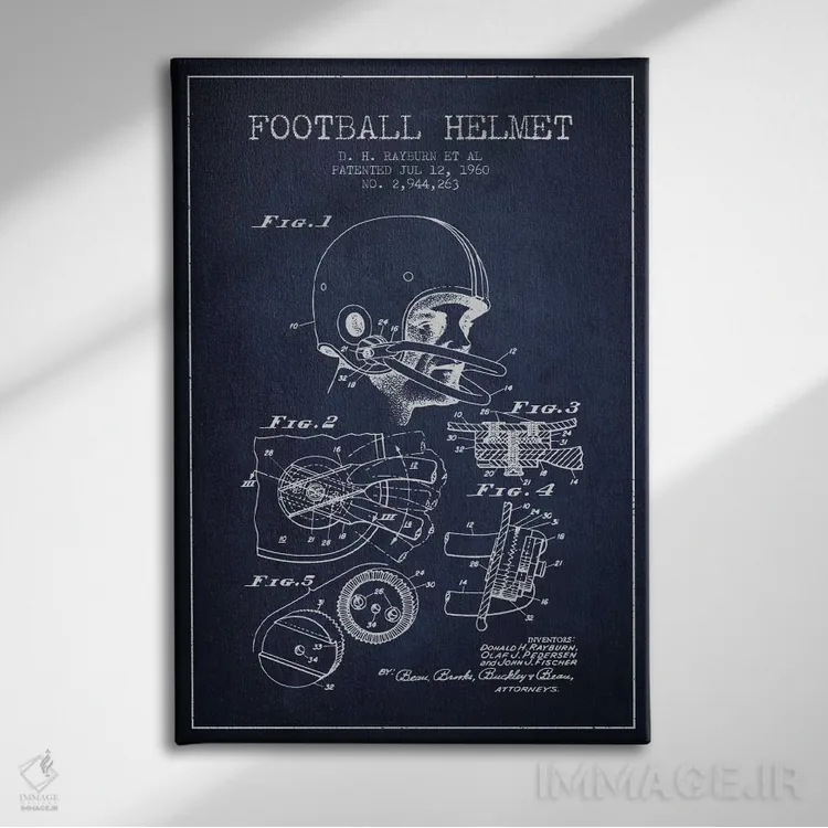 اگر دکور شما کلاسیک/رترو است، «نقشهٔ ثبت اختراع کلاه ایمنی فوتبال (آبی سرمهای)» اثرِ «پیکسل کهنه (استودیو/نام هنری)» با سبک هنری کاملاًً مینشیند.