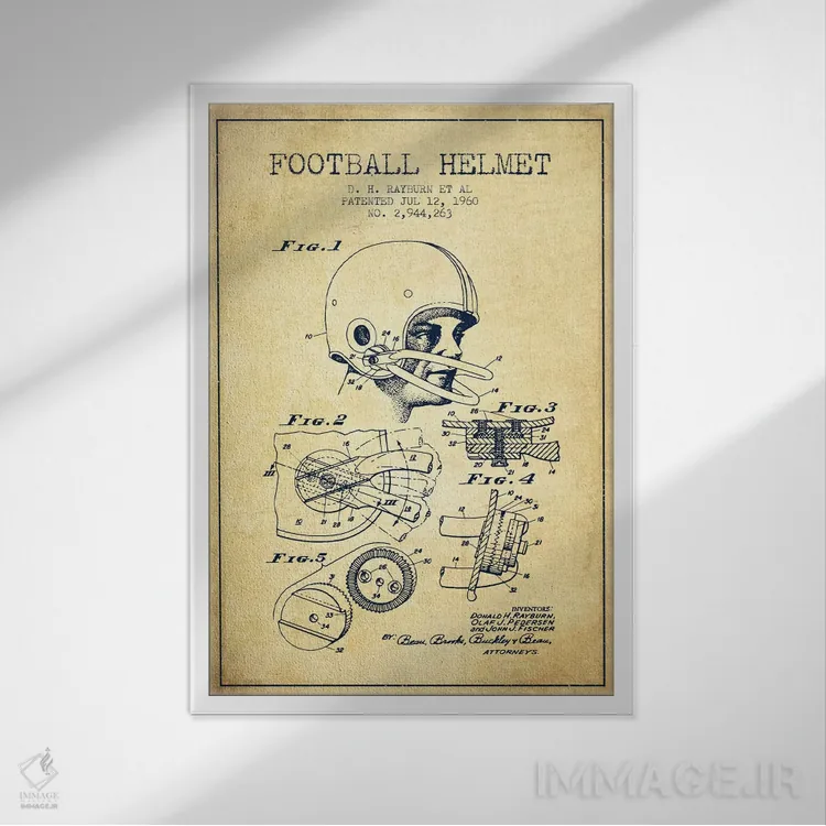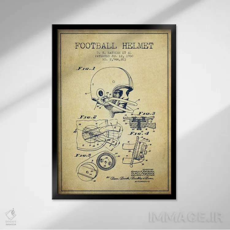 تابلو نقشهٔ ثبت اختراع کلاه ایمنی فوتبال قدیمی اثر پیکسل کهنه (استودیو/نام هنری)