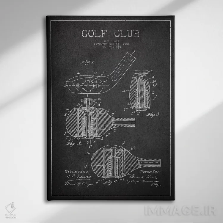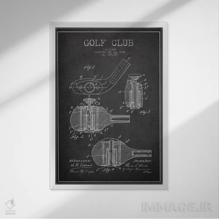 در «نقشهٔ ثبت اختراع چوب گلف (زغالسنگی)» اثرِ «پیکسل کهنه (استودیو/نام هنری)»، موضوعِ این اثر با زبانِ رترو روایت میشود؛ هم خاص است هم دکورپذیر.