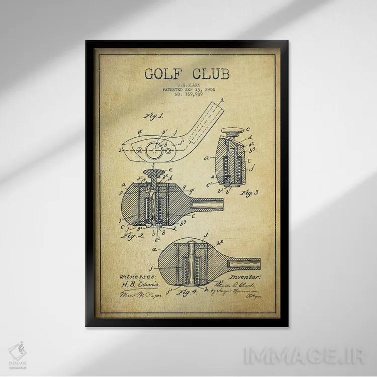 تابلو دکوراتیو نقشه ثبت اختراع چوب گلف قدیمی اثر پیکسل کهنه