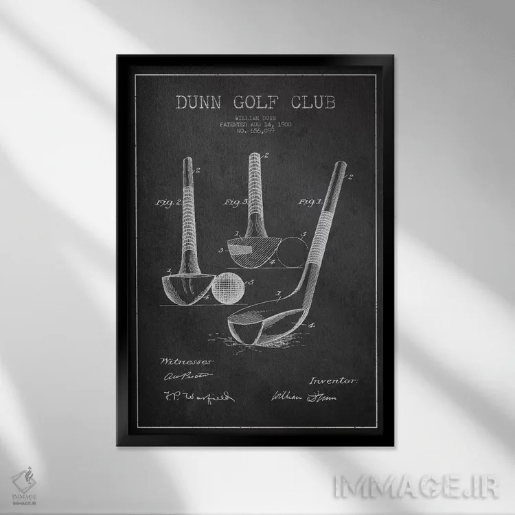 اگر دکور شما کلاسیک/رترو است، «نقشهٔ ثبت اختراع چوب گلف دان (زغالسنگی)» اثرِ «پیکسل کهنه (استودیو/نام هنری)» با سبک هنری کاملاًً مینشیند.